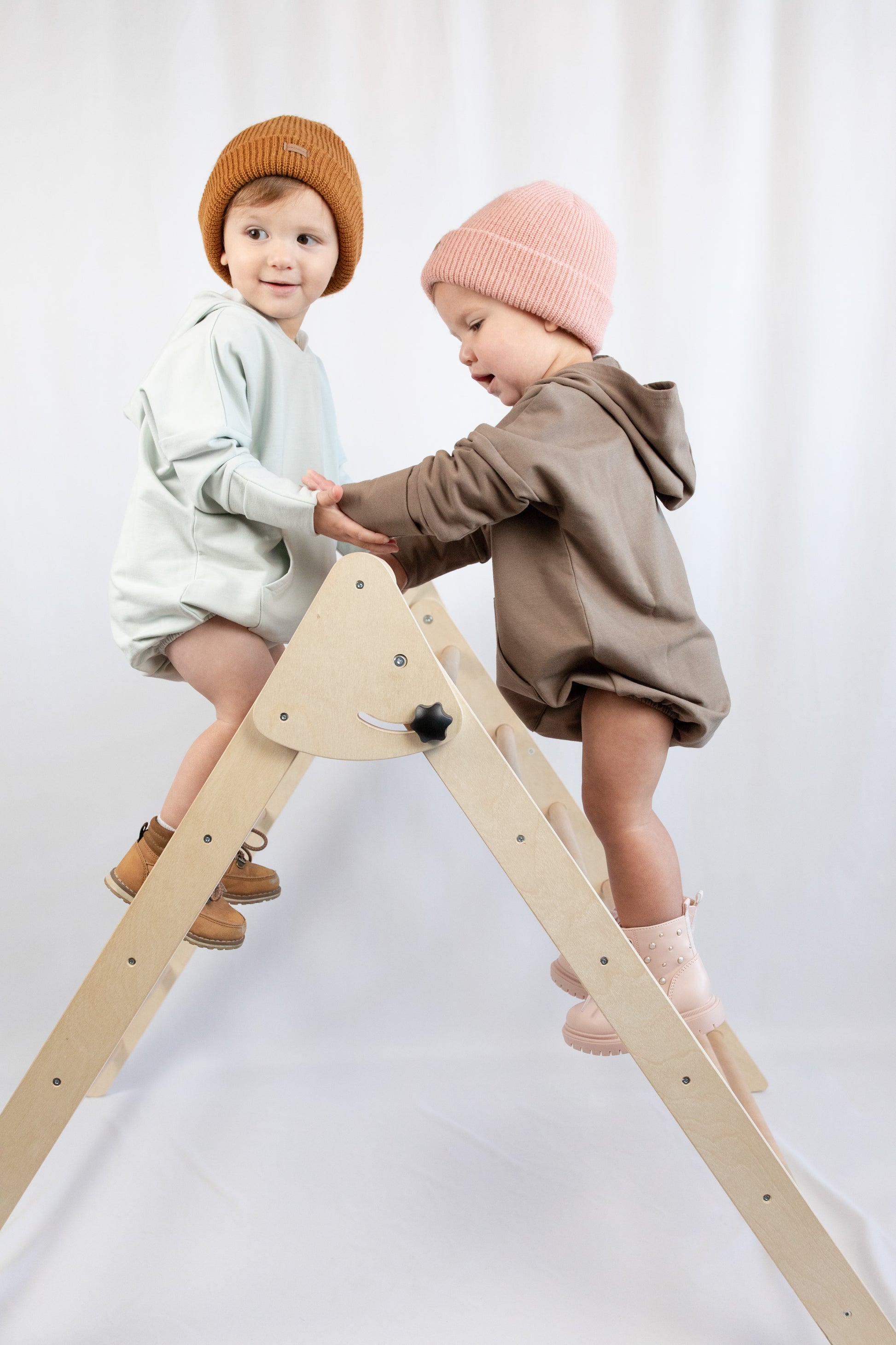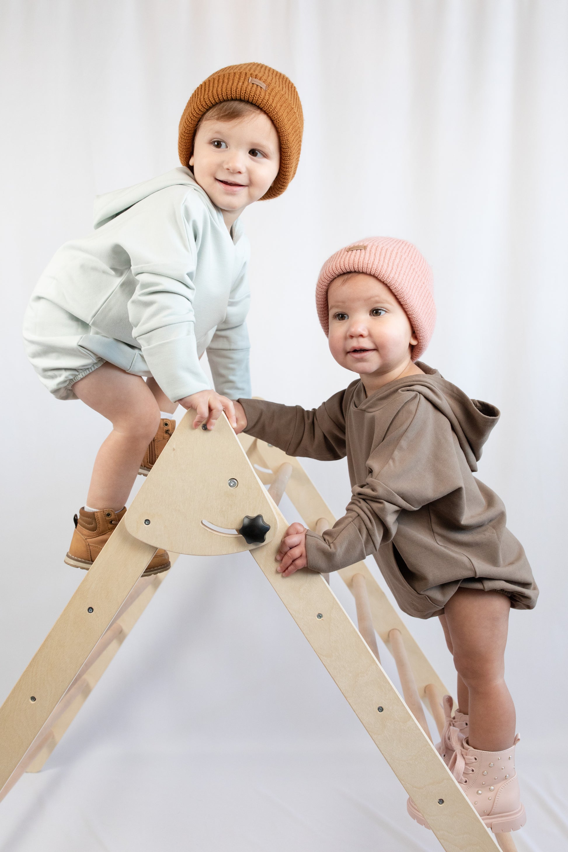 Keep your little one cozy and stylish with our Hooded Bubble Romper with Foldable Hand Cuffs. Crafted from soft, breathable fabric, this adorable one-piece features an oversized bubble fit, offering both comfort and mobility for active babies and toddlers. The attached hood adds extra warmth and a playful touch, while the snap-button closure at the bottom makes diaper changes a breeze.