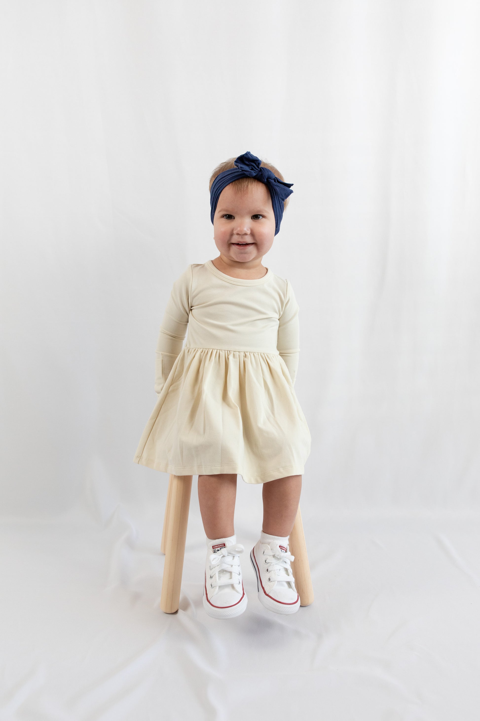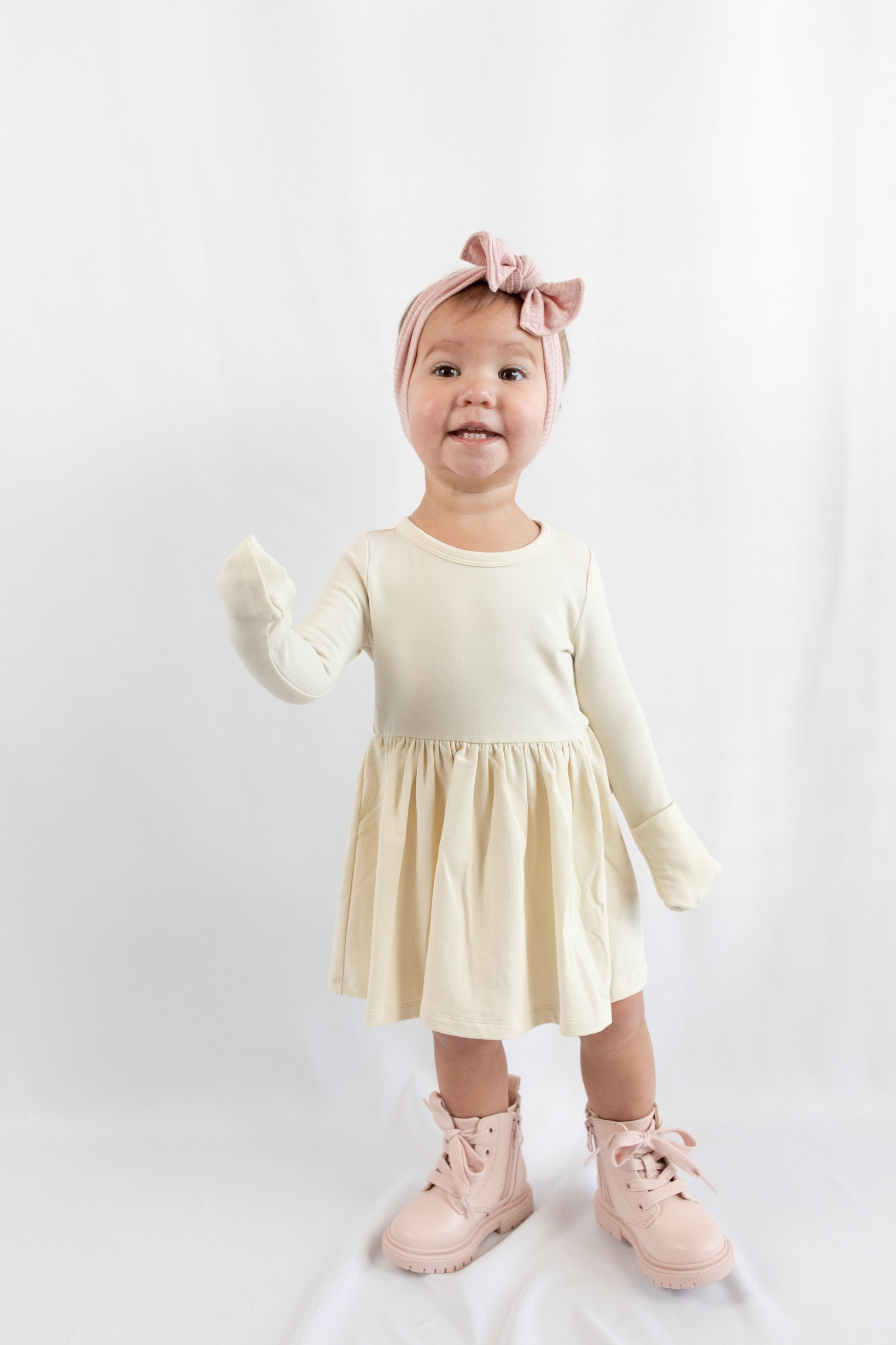 Long Sleeve Onesie Dress - Almond Milk