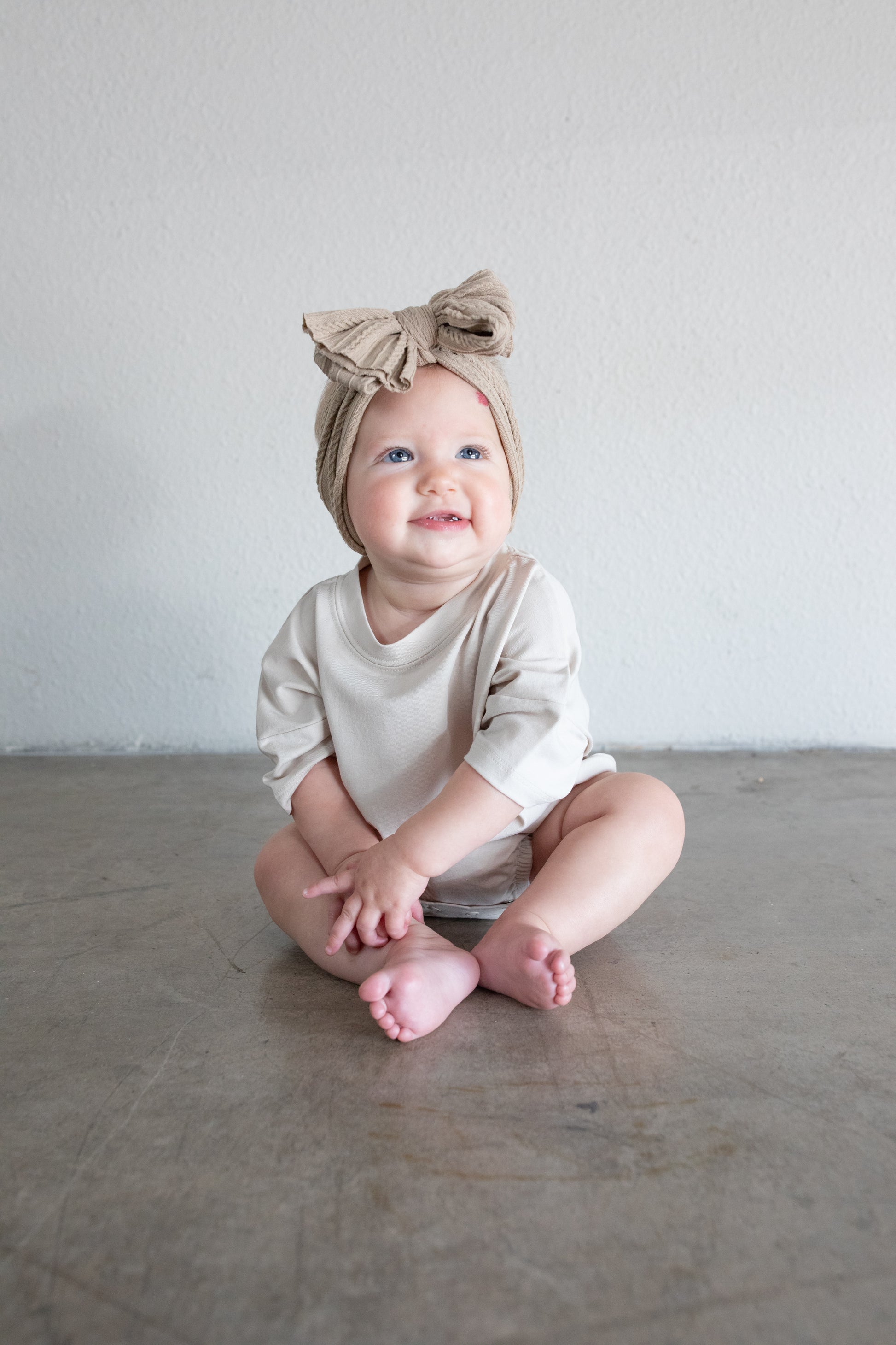 Wrap your little one in the ultimate blend of comfort and style with our Oversized Tee Romper. Crafted from a premium mix of TENCEL, organic cotton, and spandex, this romper is buttery soft, breathable, and stretchy—perfect for delicate baby skin.