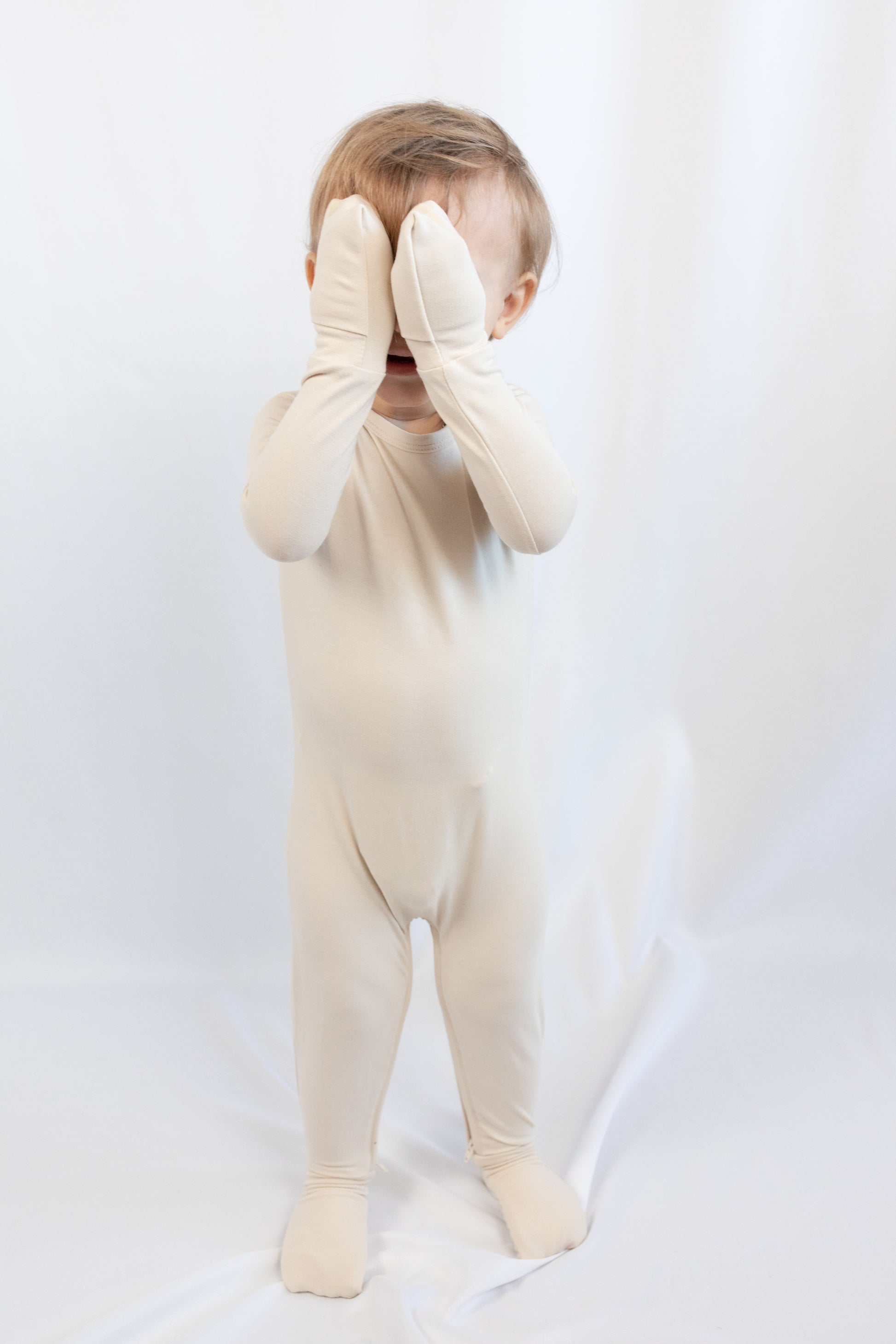 Keep your baby snug and comfortable in our Long Sleeve Romper with Half-Moon Zipper and Foldable Hand Cuffs. Crafted from gentle, soft fabric, this romper is perfect for delicate skin, providing all-day comfort without irritation. The innovative half-moon zipper design curves around the body for easy dressing and diaper changes, while the foldable hand cuffs offer warmth and scratch protection for little hands.