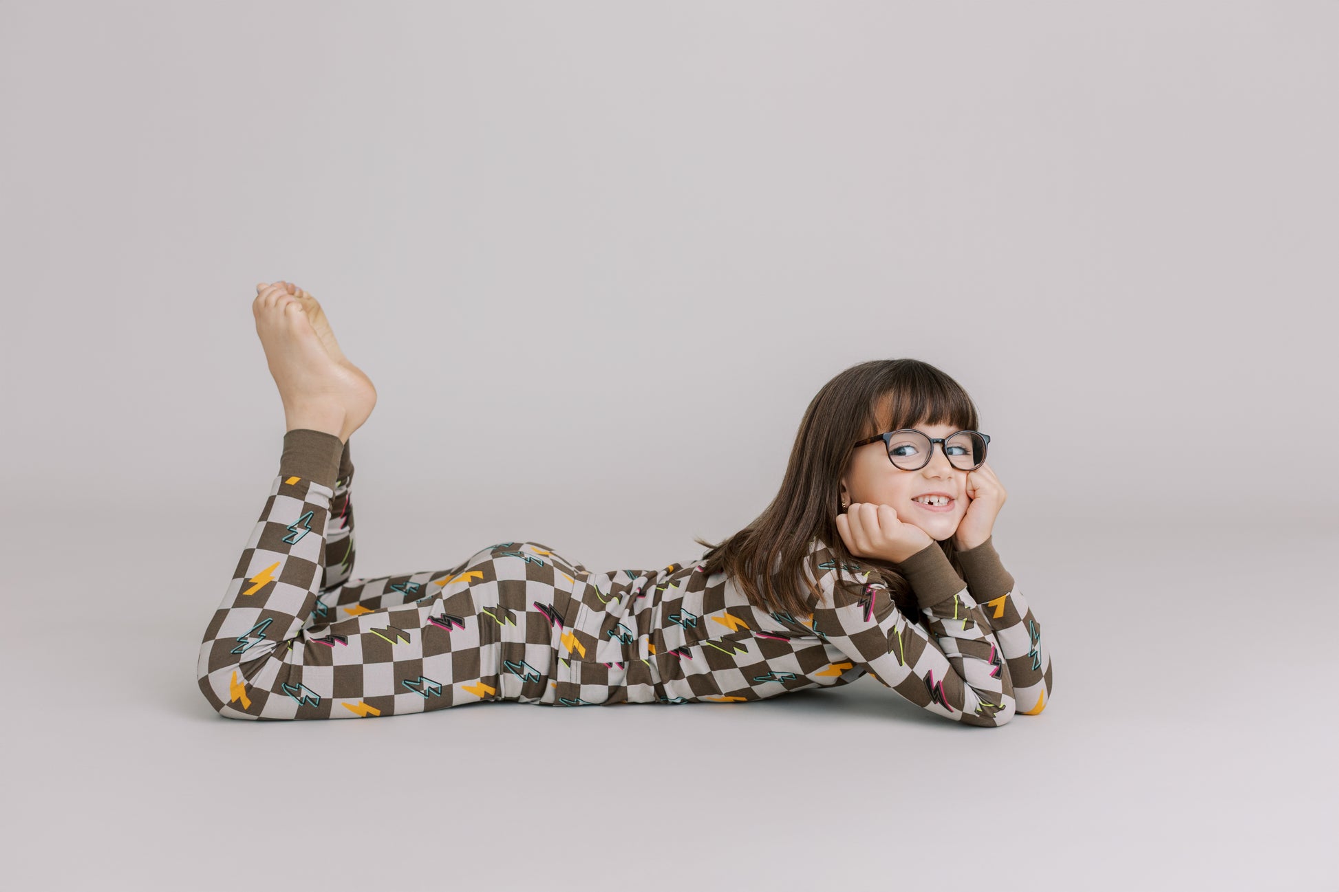 Two Piece Pajama Set: Checkered with Lightning Bolts