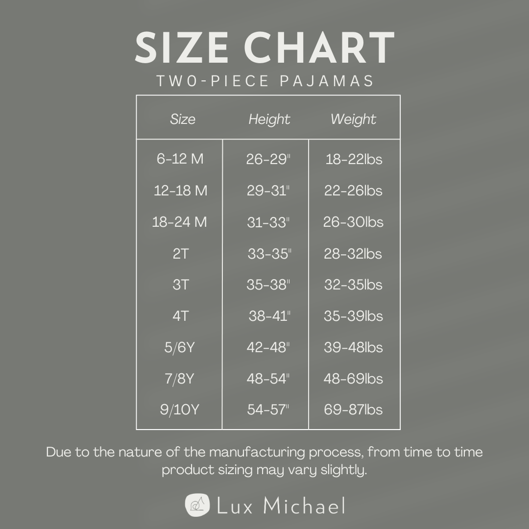 Soft, breathable, and made for all-night comfort—our Two-Piece Pajama Set blends gentle fabrics with thoughtful, child-friendly design. Created in collaboration between Lux Michael and Line Gang Co., this set is crafted from premium TENCEL™, organic cotton, and elastane—perfect for sensitive skin and made to move with your little one from bedtime to morning snuggles.